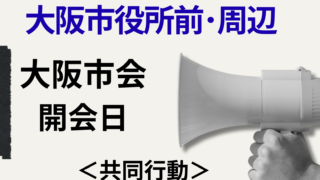 大阪市会に、都構想反対!信任してない!都構想の設計図を作る「法定協議会」設置するな!カジノ計画撤回!を訴えよう!!11:30~13:00頃まで 大阪市役所前・周辺◆共同行動として取り組みます・カジノに反対する大阪9団体懇談会※夢洲カジノを止…