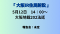 =市民の力で「大阪市廃止」を止めましょう!=日時:5月12日(火)18時30分開会会場:大阪国労会館 3階ホール(JR環状線「天満駅」徒歩3分)詳しくはチラシをご覧ください、5・12集会チラシ(4月21日修正)ダウンロード