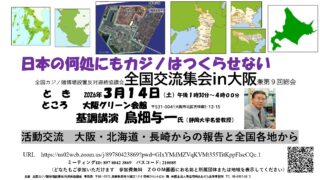 3/14 「日本のどこにもカジノをつくらせない3.14全国集会 in 大阪」/全国カジノ賭博場設置反対連絡協議会