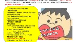 「夢洲カジノを止める」吹田の会カジノ反対街宣 11/1(土)南千里駅前 11/19(水)JR吹田駅前いずれも11:00~12:00