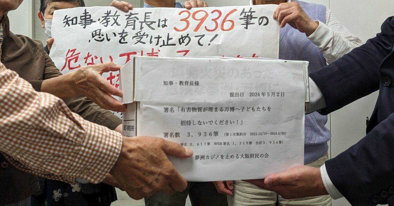 5月2日、夢洲カジノを止める大阪府民の会は、万博推進局、府教育庁、子ども家庭局に対し、「子どもをカジノに行かせないで!署名」3936筆(WEB1329筆、紙2617筆)を手渡した。段ボールに入った署名は見た目にも重さがあり、そこに込められた...