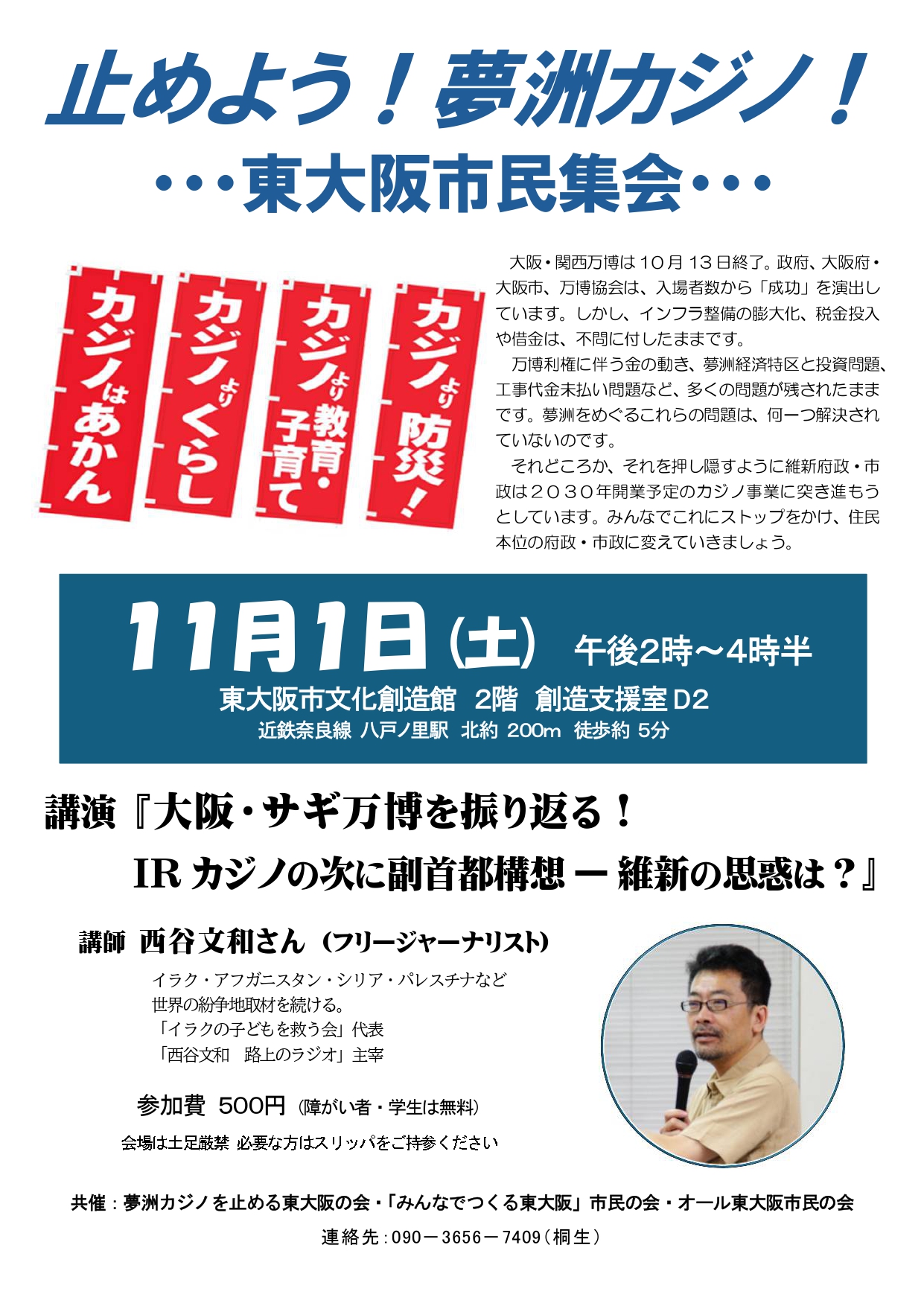 共催:夢洲カジノを止める東大阪の会・「みんなでつくる東大阪」市民の会・オール東大阪市民の会