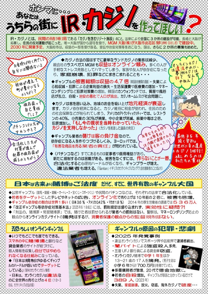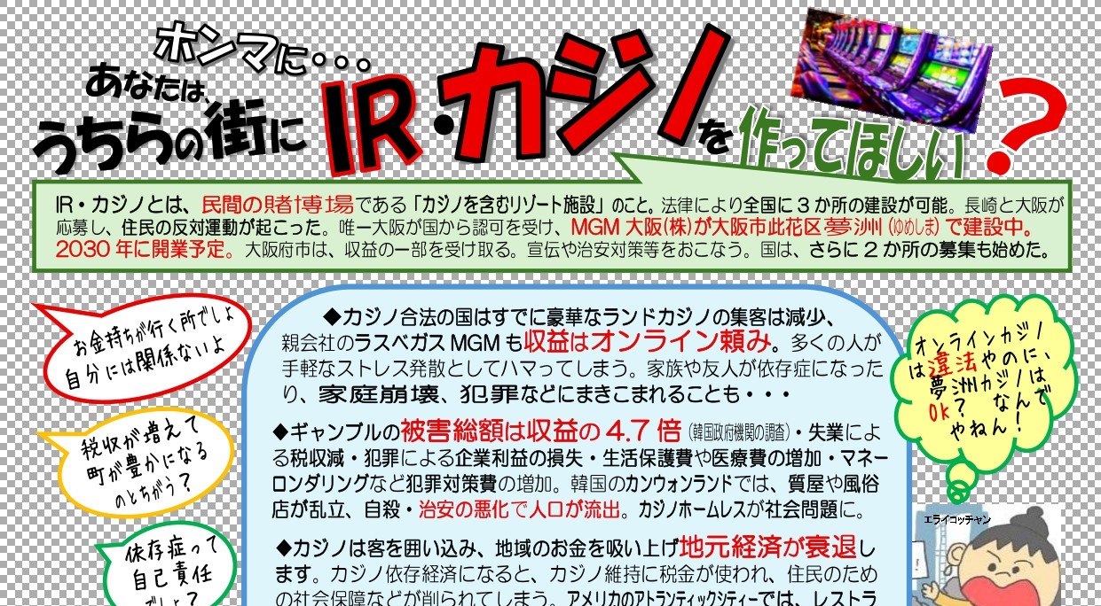 新チラシ「うちらの街にIR・カジノホンマに作ってほしいの?」