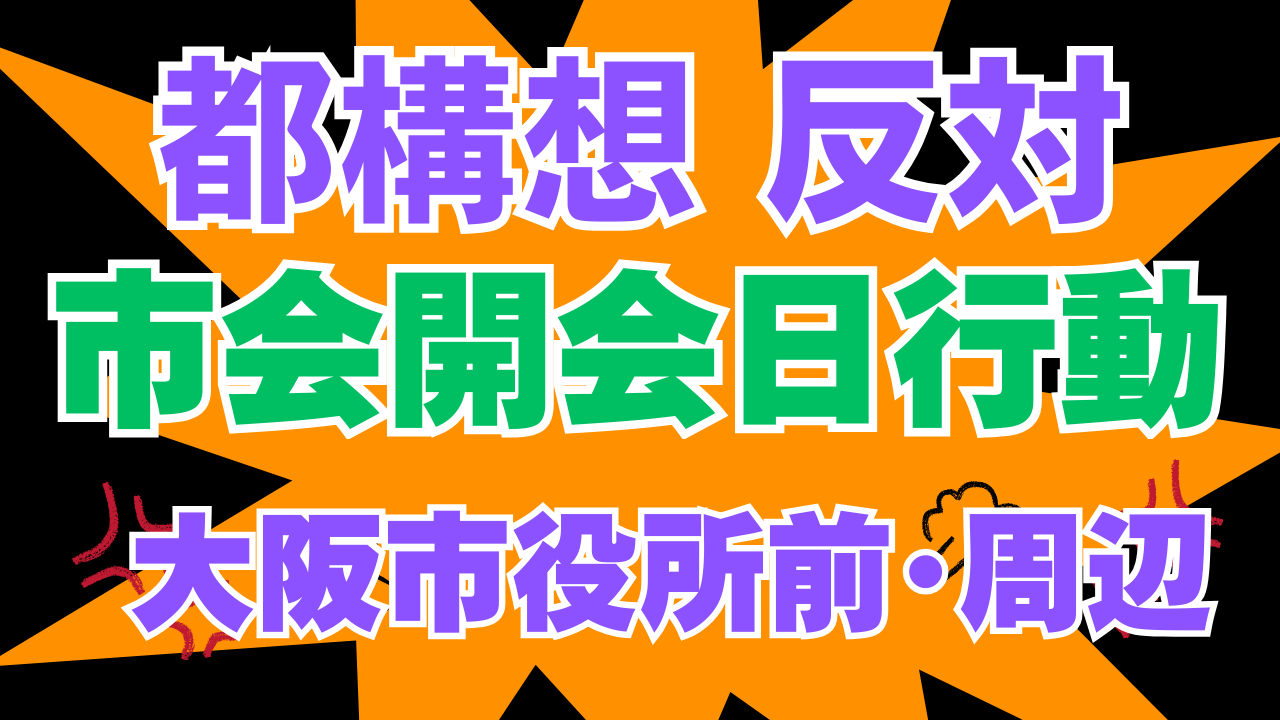 大阪市会に、都構想反対!信任してない!都構想の設計図を作る「法定協議会」設置するな!カジノ計画撤回!を訴えよう!!