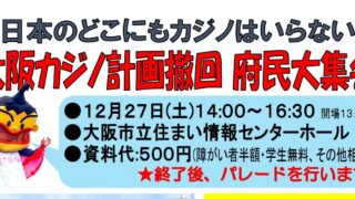 府民の会からのお知らせ 12月27日 大阪カジノ計画撤回! 府民大集会を開催します